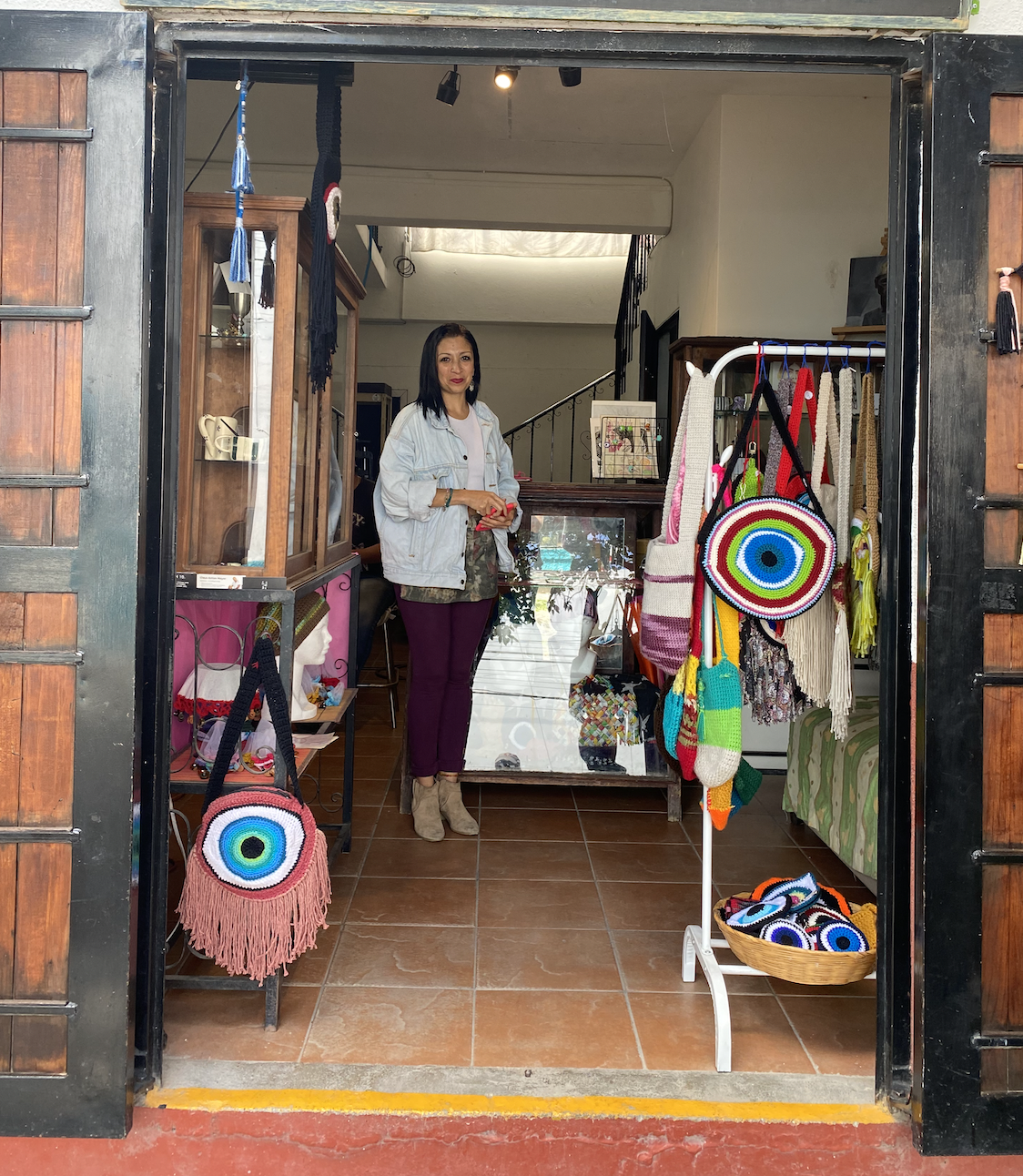 Ximhoi is an incredible knitter who currently has a specific “evil eye” bolsa which is both gorgeous and useful. She make this bag and other knitted styles that can be seen in her shop. She can also be contacted for custom designs @ximhoi_bazar.